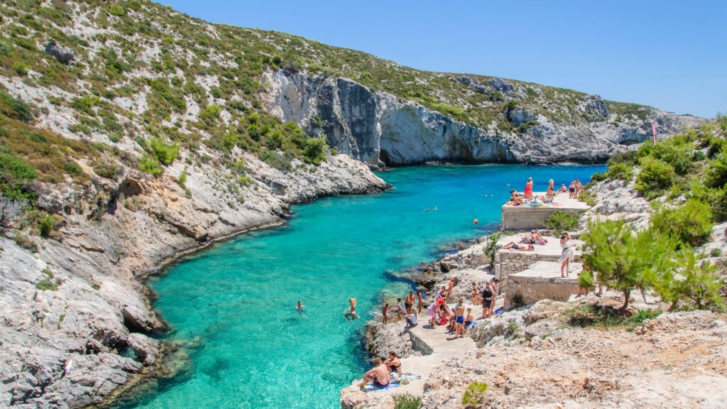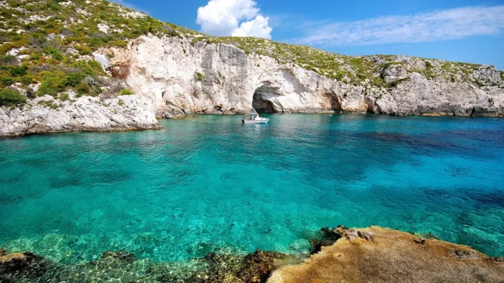 If you’re looking for a place with authentic natural beauty, far from the crowds and organized beaches, then Porto Limnionas is the perfect destination for you. Located on the western coast of Zakynthos, near the village of Agios Leon, this stunning bay is one of the island’s most breathtaking and unspoiled natural spots.